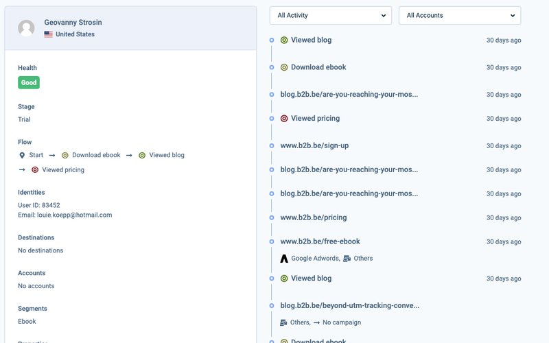 A nice functionality is that you are able to see each health stage in the contact profile. This enables you to combine historical data of their journy and their product usage or their interactions with your touchpoints.